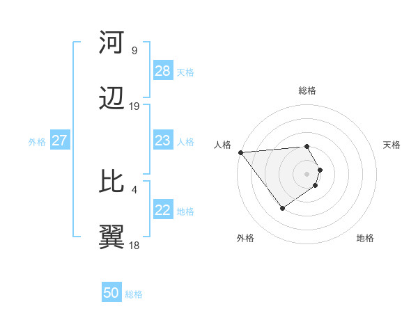 河辺 比翼さんの総格は50画の2点!