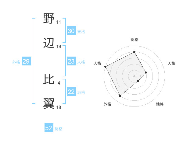 野辺 比翼さんの外格は29画の4点!
