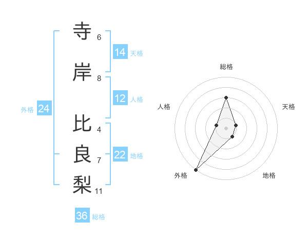 寺岸 比良梨さんを姓名の画数から五運を鑑定