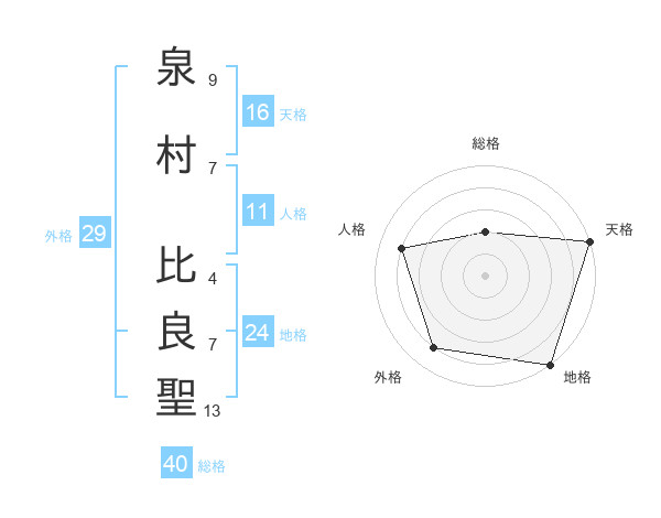 泉村 比良聖さんを姓名の画数から五運を鑑定