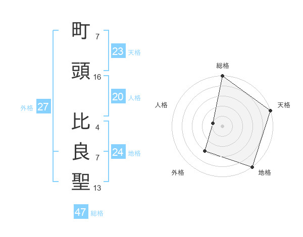 町頭 比良聖さんの総格は47画の5点!