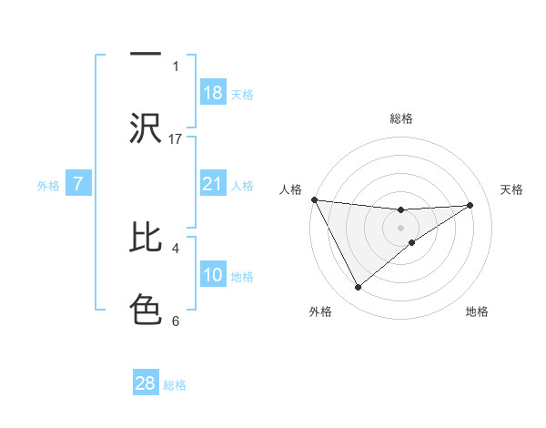 一沢 比色さんの総格は28画の1点!