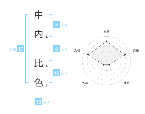 中内 比色さんの総格は18画の4点!