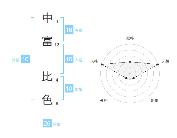 中富 比色さんの総格は26画の2点!