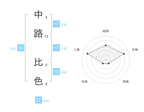 中路 比色さんの天格は17画の4点!