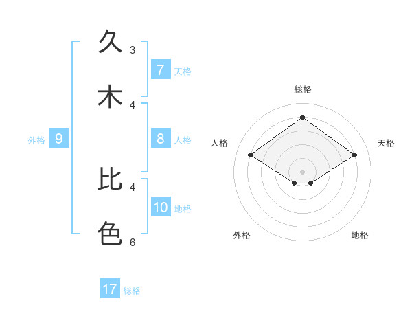 久木 比色さんの総格は17画の4点!