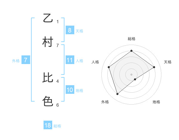 乙村 比色さんの総格は18画の4点!