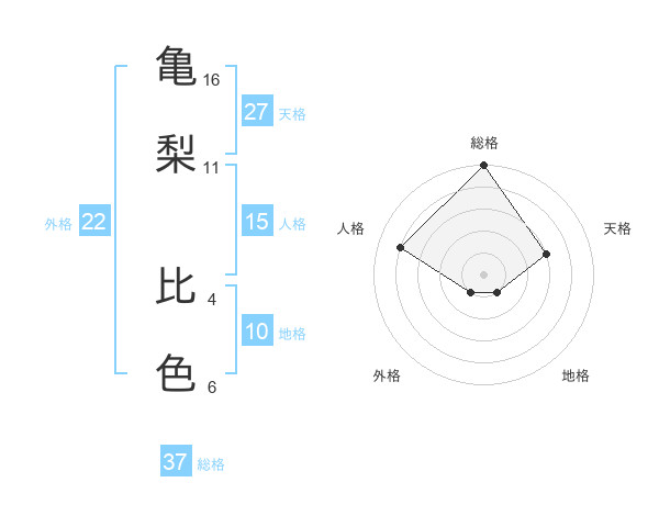 亀梨 比色さんの総格は37画の5点!