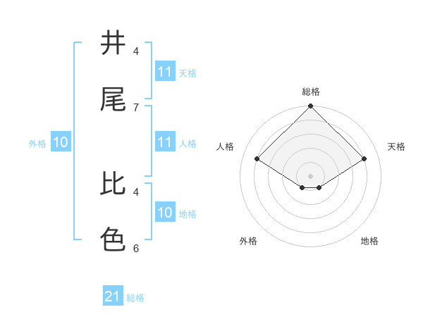 井尾 比色さんの天格は11画の4点!
