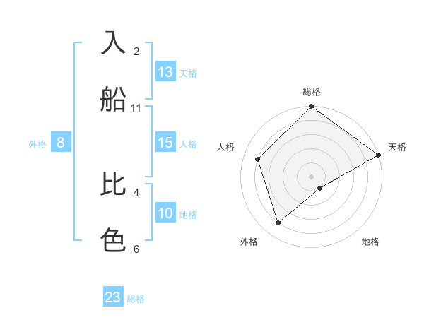 入船 比色さんの総格は23画の5点!
