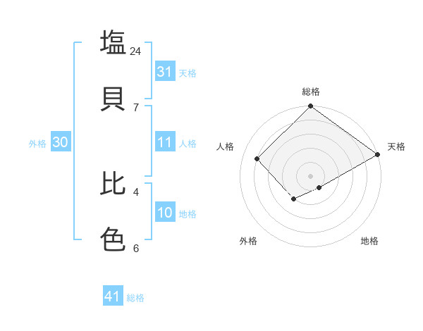 塩貝 比色さんを姓名の画数から五運を鑑定