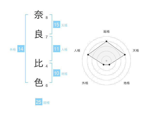 奈良 比色さんの総格は25画の4点!