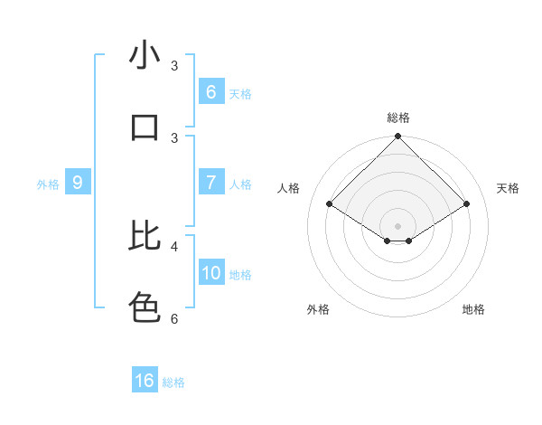小口 比色さんの総格は16画の5点!