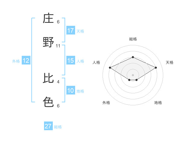 庄野 比色さんの総格は27画の3点!
