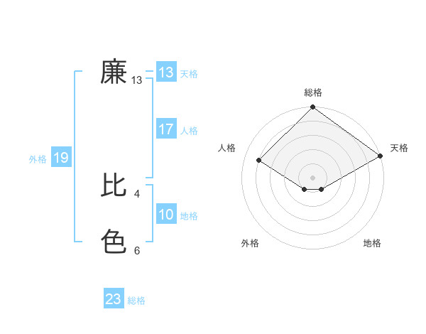 廉 比色さんの総格は23画の5点!