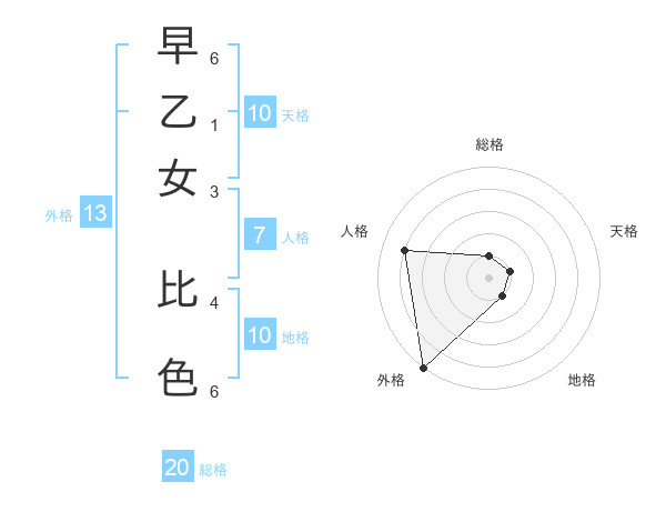 早乙女 比色さんを姓名の画数から五運を鑑定