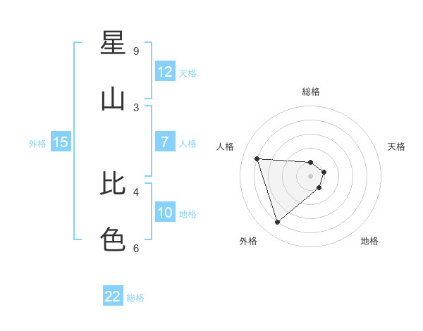星山 比色さんの総格は22画の1点!