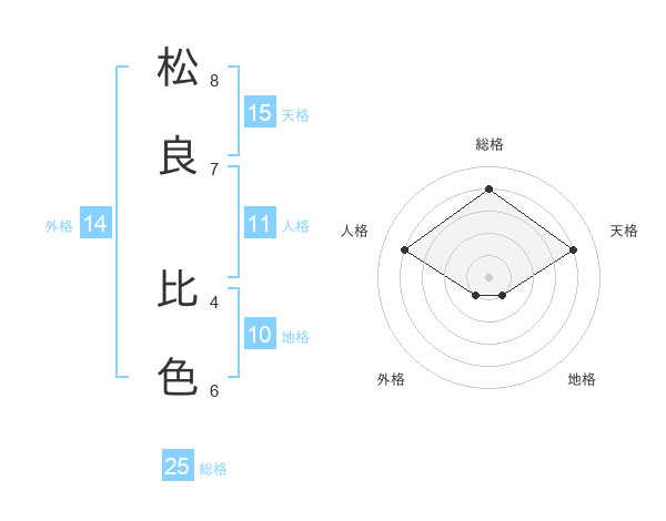 松良 比色さんの総格は25画の4点!