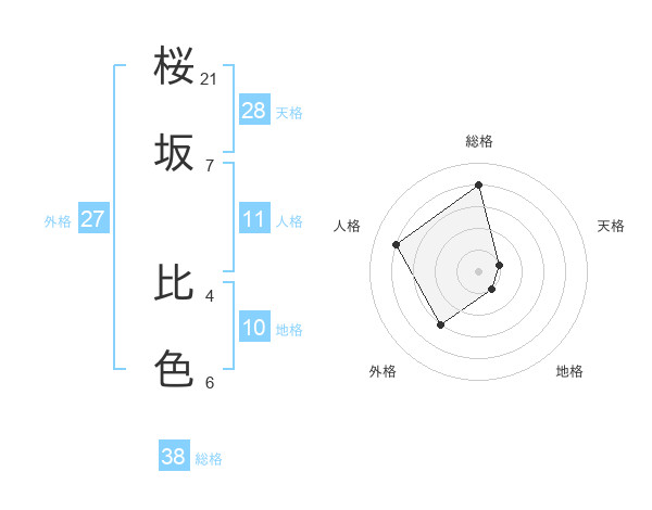桜坂 比色さんを姓名の画数から五運を鑑定