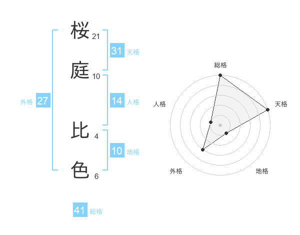 桜庭 比色さんを姓名の画数から五運を鑑定