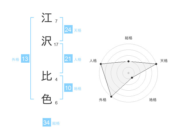 江沢 比色さんの総格は34画の2点!