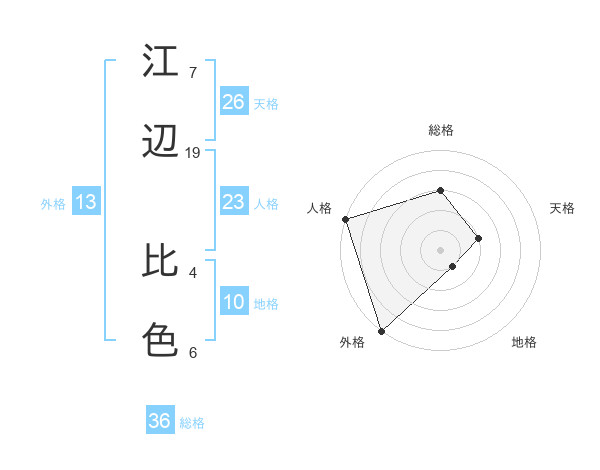 江辺 比色さんの外格は13画の5点!