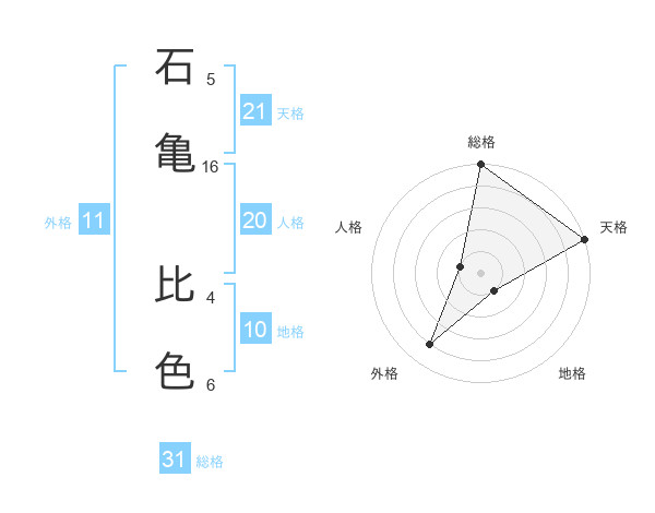 石亀 比色さんの天格は21画の5点!