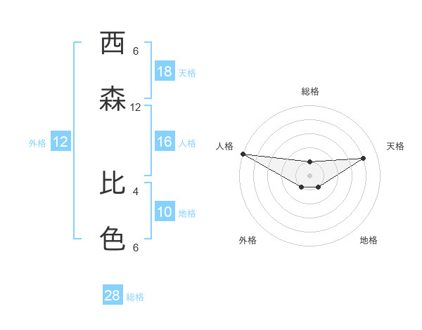 西森 比色さんの総格は28画の1点!