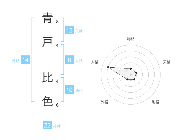 青戸 比色さんの総格は22画の1点!