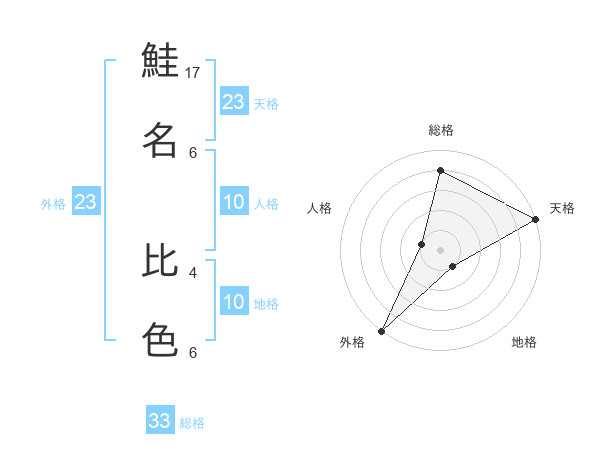 鮭名 比色さんの総格は33画の4点!