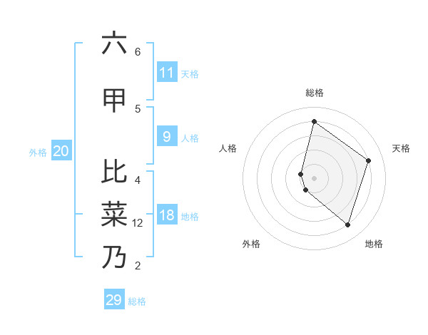 六甲 比菜乃さんを姓名の画数から五運を鑑定