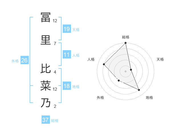 冨里 比菜乃さんの総格は37画の5点!