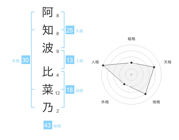 阿知波 比菜乃さんの総格は43画の2点!