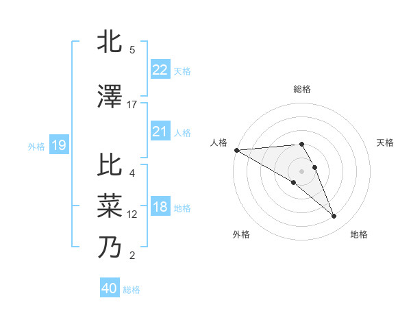 北澤 比菜乃さんを姓名の画数から五運を鑑定