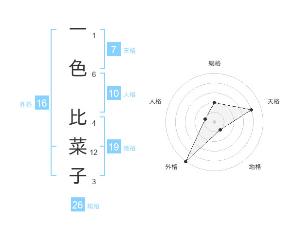 一色 比菜子さんを姓名の画数から五運を鑑定