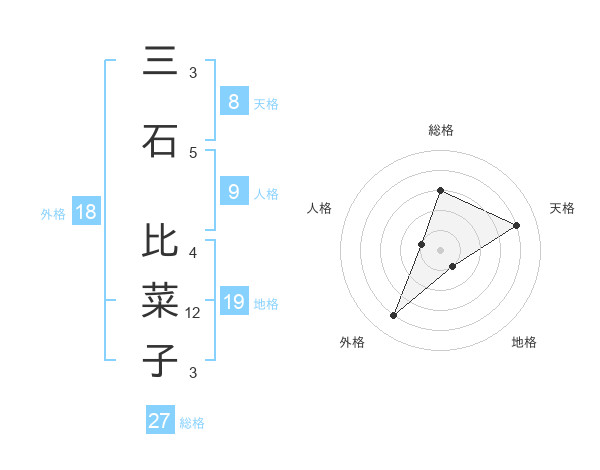 三石 比菜子さんの総格は27画の3点!