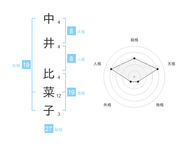 中井 比菜子さんを姓名の画数から五運を鑑定
