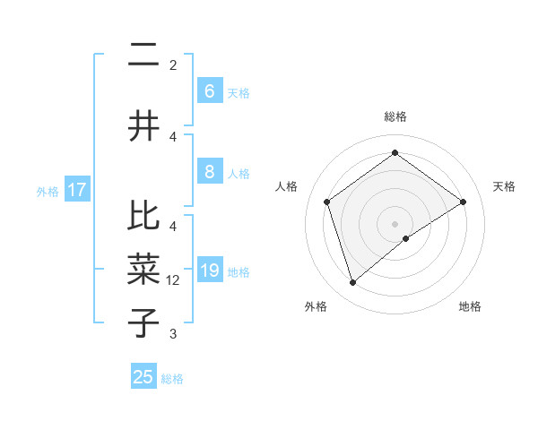 二井 比菜子さんを姓名の画数から五運を鑑定