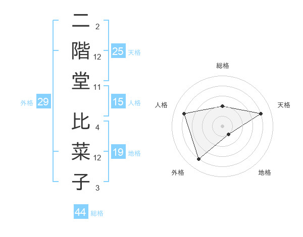 二階堂 比菜子さんを姓名の画数から五運を鑑定
