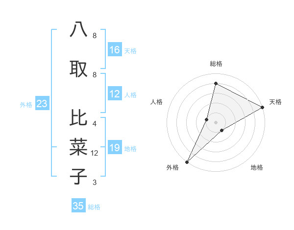 八取 比菜子さんを姓名の画数から五運を鑑定