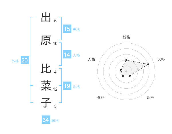 出原 比菜子さんを姓名の画数から五運を鑑定