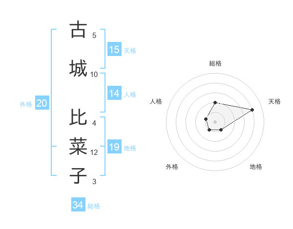 古城 比菜子さんを姓名の画数から五運を鑑定