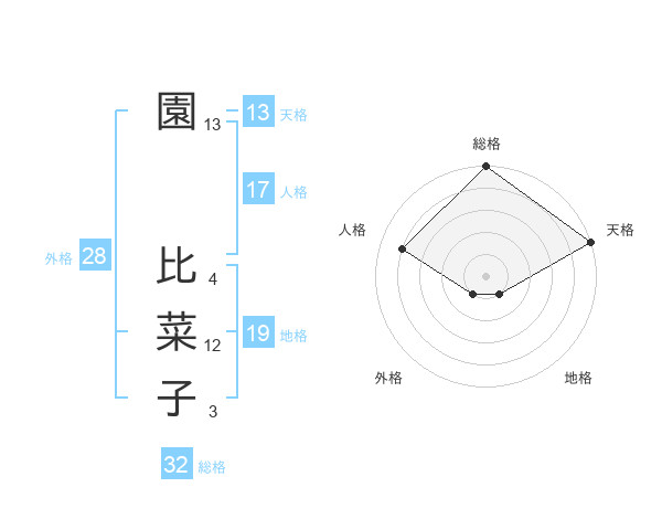 園 比菜子さんの天格は13画の5点!