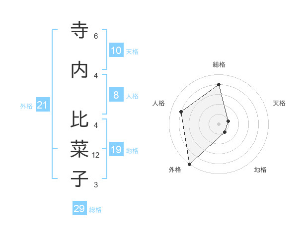 寺内 比菜子さんの総格は29画の4点!