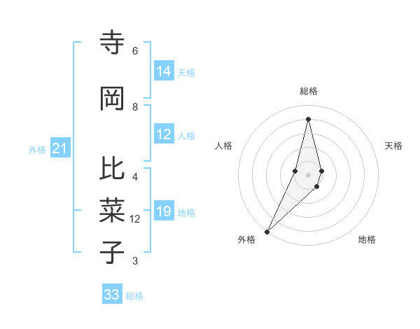 寺岡 比菜子さんの総格は33画の4点!