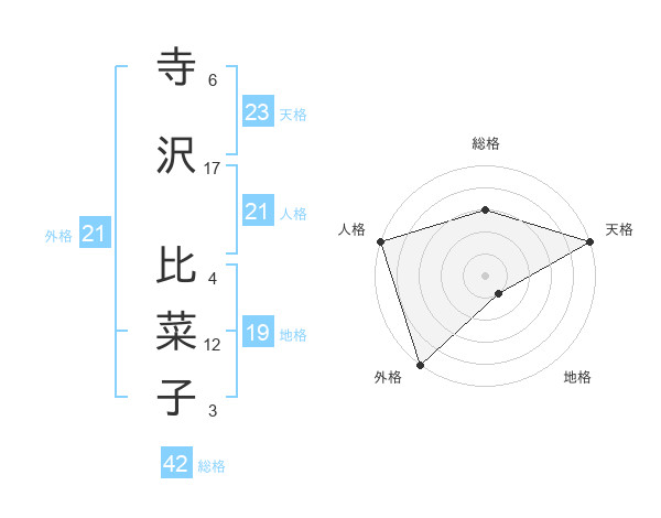 寺沢 比菜子さんの外格は21画の5点!
