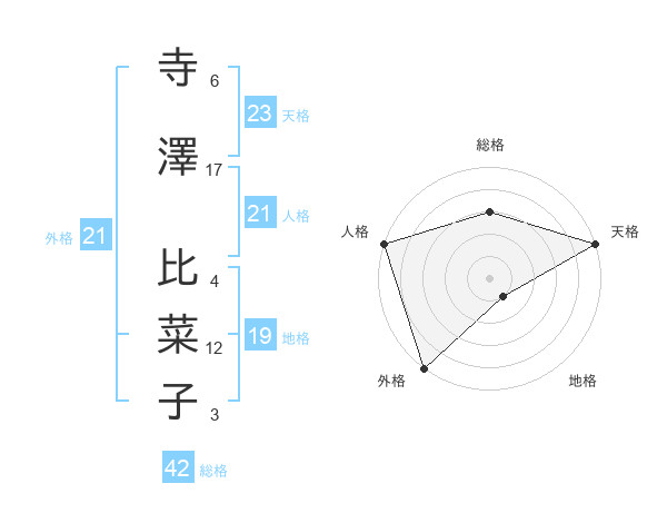 寺澤 比菜子さんの外格は21画の5点!