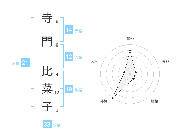寺門 比菜子さんの総格は33画の4点!