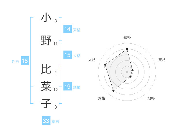 小野 比菜子さんを姓名の画数から五運を鑑定
