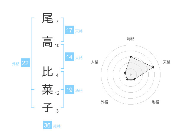 尾高 比菜子さんの天格は17画の4点!
